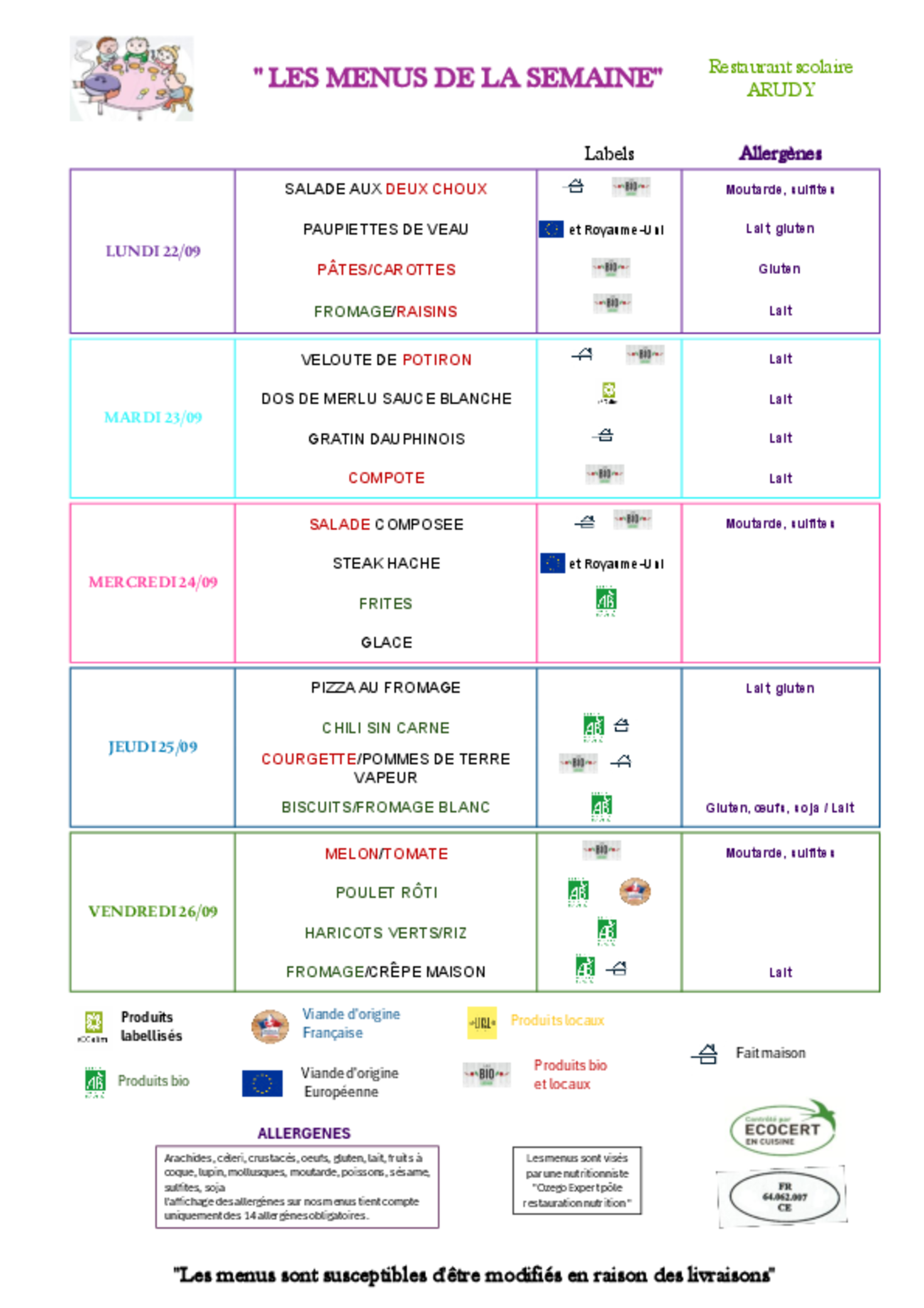 Menus du 22 au 26 Septembre
