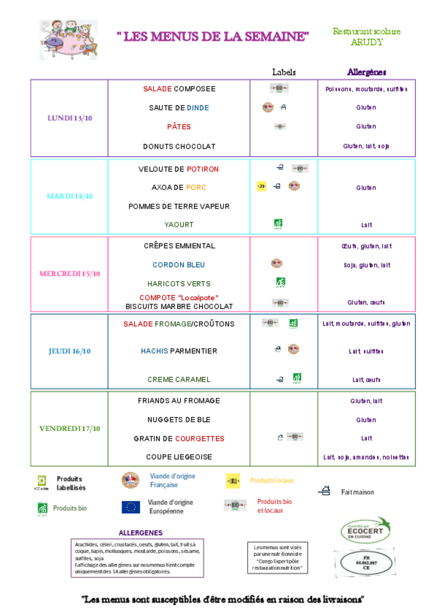 Menus du 13 au 17 Octobre