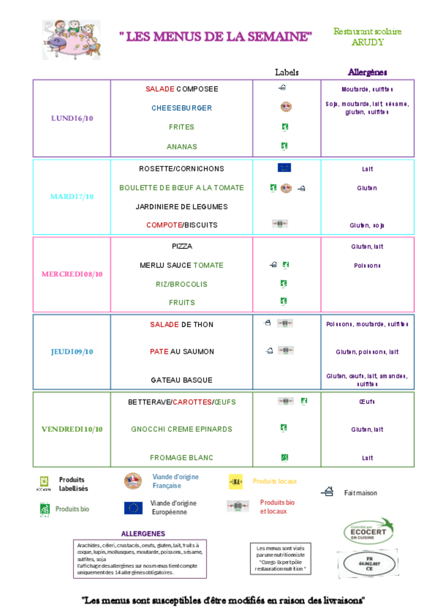 Menus du 6 au 10 Octobre